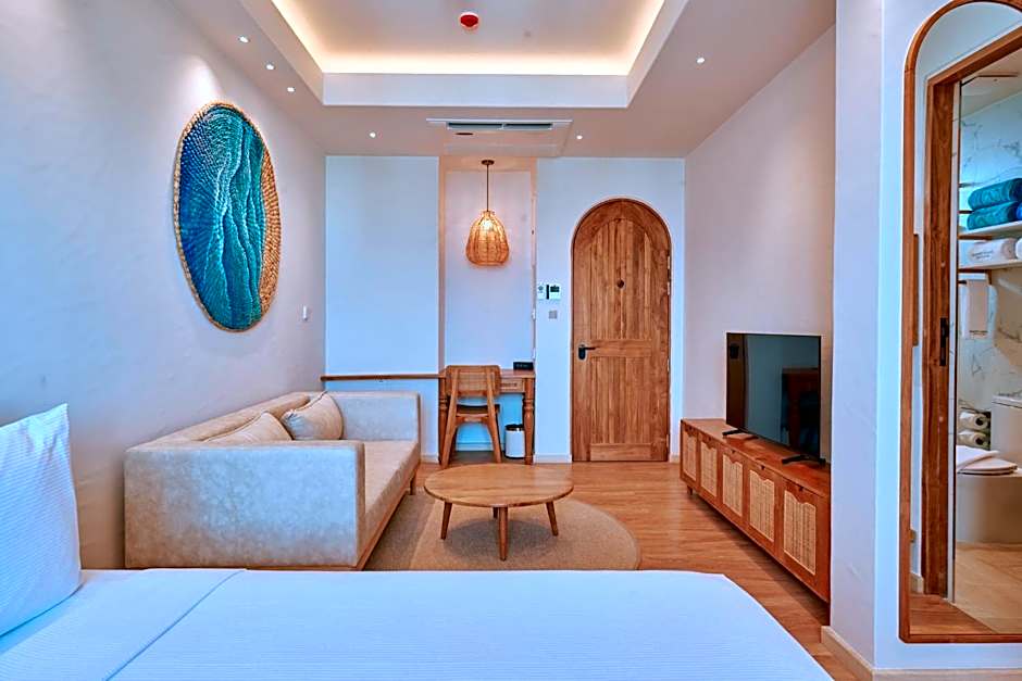 This bright room has a seating area and air conditioning, as well as a mini-bar.